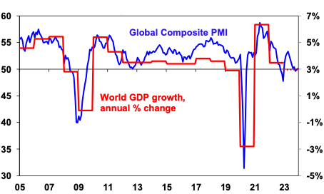 Recession – a mild recession should be manageable but a deep recession will mean significant downside in shares. So far global business conditions PMIs are soft but consistent with okay growth.